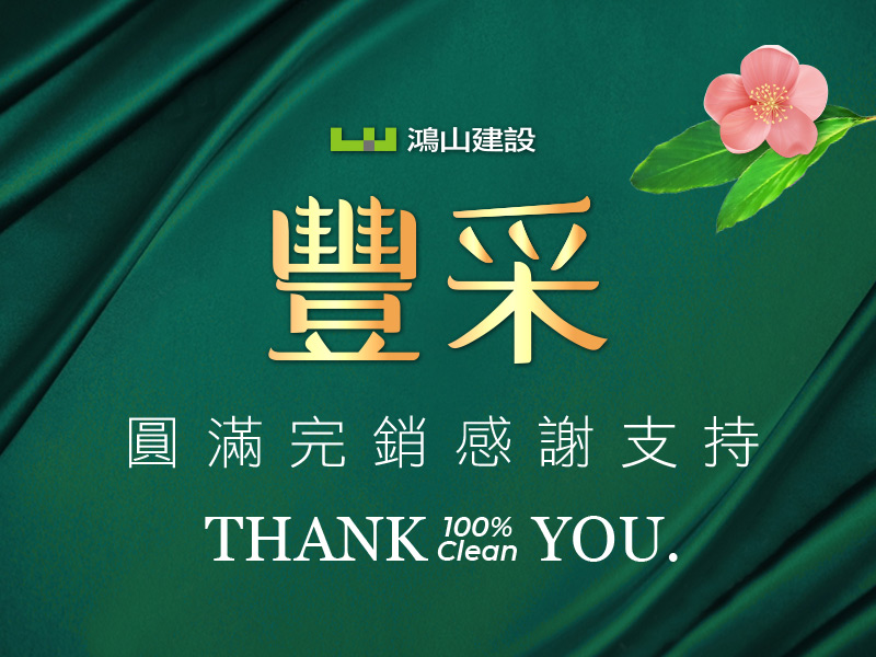 【鴻山豐采完銷感謝公告】 感謝大家熱烈支持!鴻山豐采圓滿完銷~ 每一位住戶的肯定,都是我們最大的動力 感謝已購住戶信任我們, 我們將以最嚴謹的品質控管、最用心的態度, 打造屬於您理想中的幸福家園。 未來,鴻山建設將帶來更多嶄新作品, 繼續與您一起「築幸福、住好宅」💖